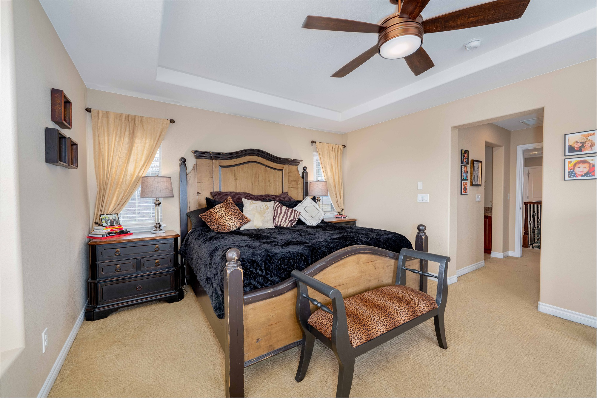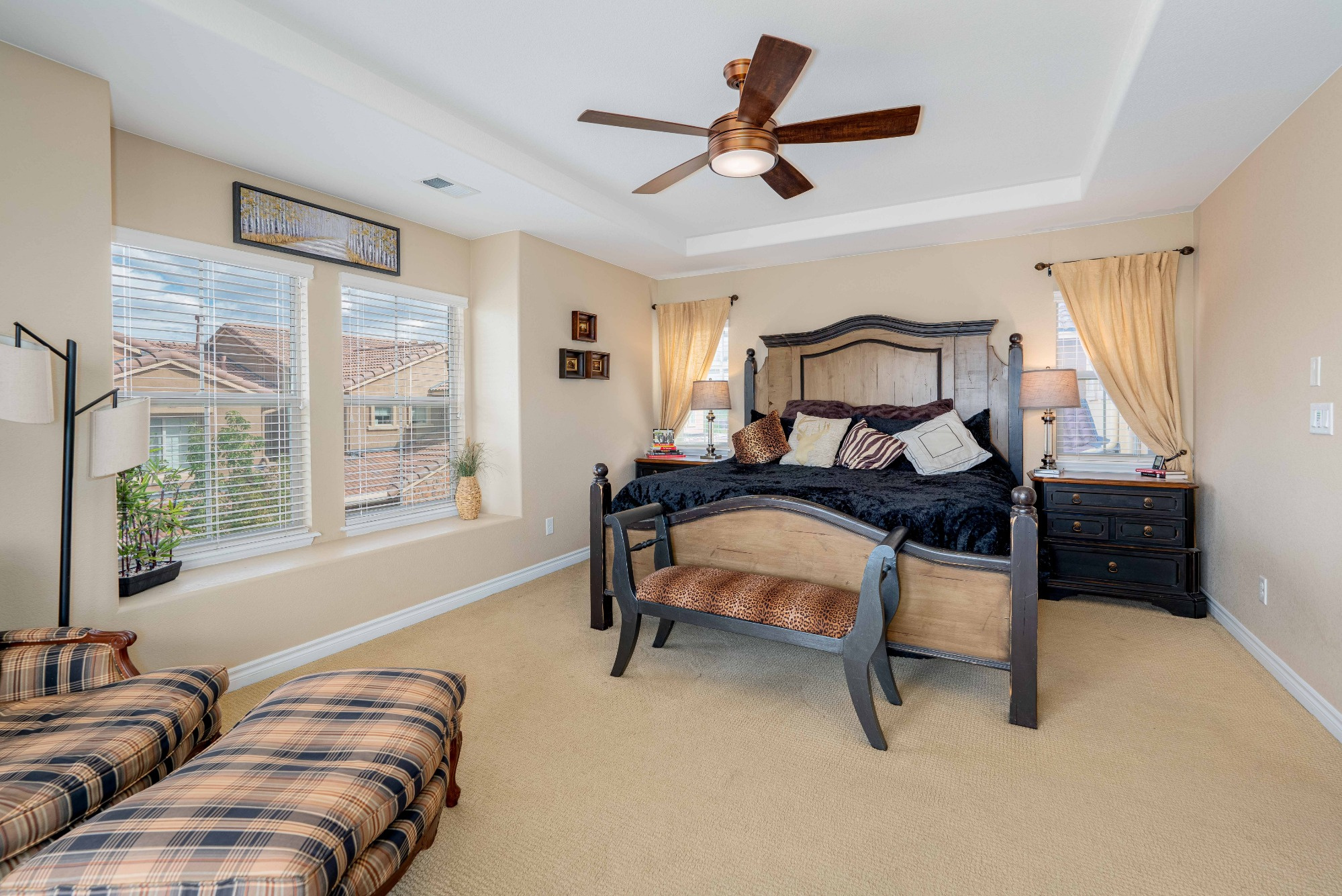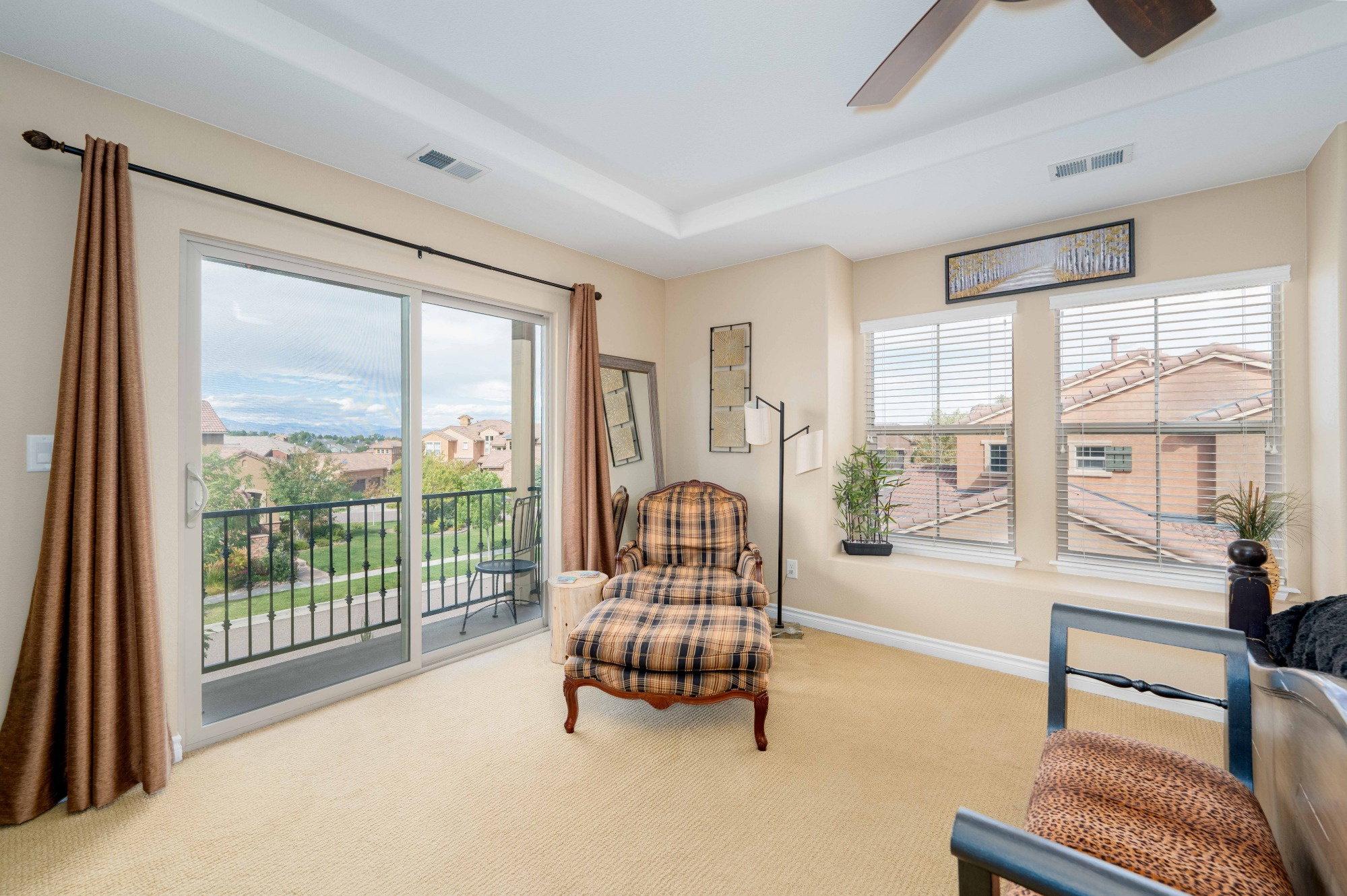 Step up the Staircase with Wrought iron balusters to the Loft. Ideal as an Office it overlooks the Living Room and boasts a Glass Slider access to a Large Balcony offering gorgeous Mountain Vistas. The Spacious Primary Retreat features a Raised Tray Ceiling, a Seating Area to enjoy those Fantastic Mountain Views and access to a Private Balcony.